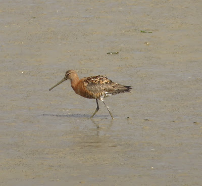 It was nice and sunny for a walk along the East Mersea seawall between Shop Lane and the Golfhouse on Wednesday 25th. On the mud were a bar-tailed godwit, 45 black-tailed godwits while on Langenhoe Point were six little terns, also 16 common terns in the Colne. A hobby was hunting after the 50+ swallows over the Fishponds Wood and two marsh harriers were flying over Reeveshall. Two green sandpipers were on the Reeveshall pool, a juvenile stonechat was by the Shop Lane dyke, a Cetti's warbler sang near the Oyster Fishery, a whinchat was in the park's grazing field and 16 yellow wagtails by the Golfhouse.