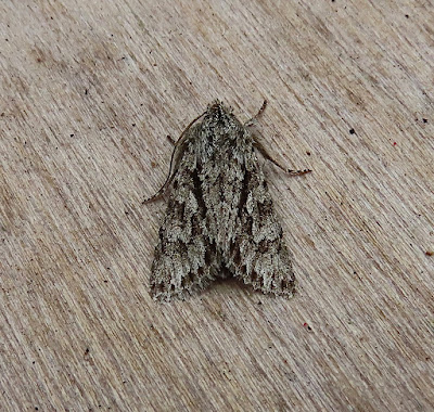 Nearly sixty moths came to the moth trap in the Firs Chase garden on Wednesday 13th, such as this Angle Shades.